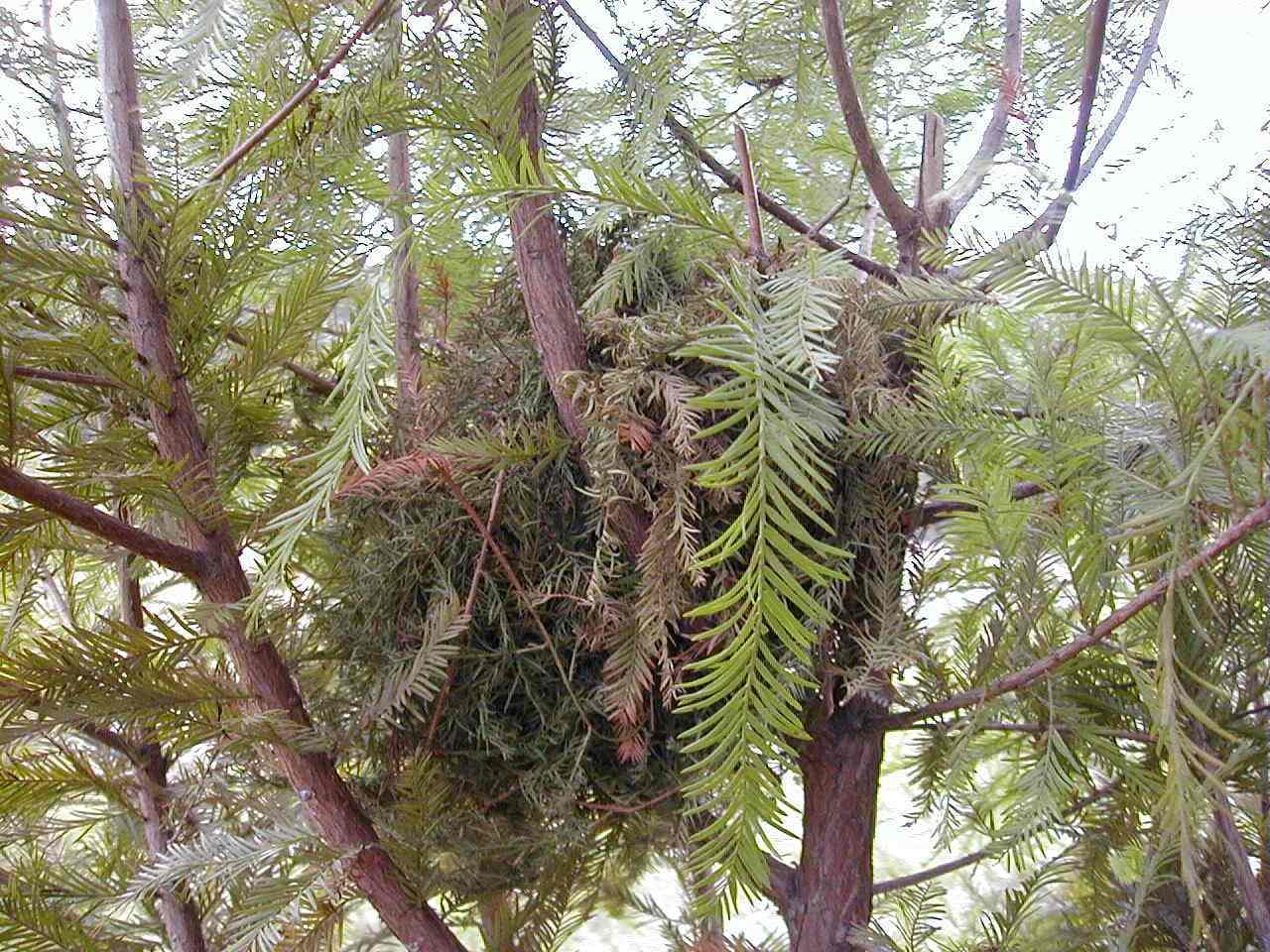 Bald Cypress (Taxodium distichum) twigs were incised by a small rodent to make this nest. |
