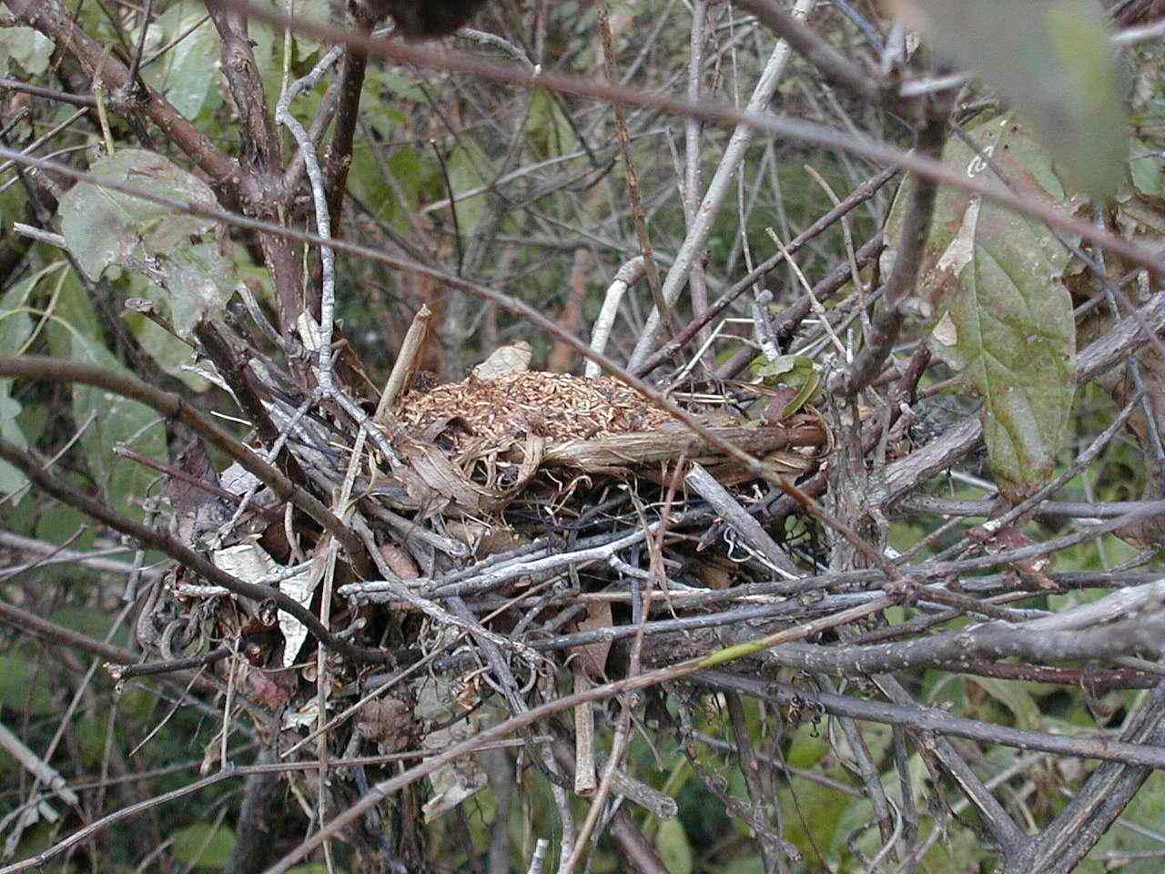 This is a former red-winged blackbird nest that is now being used as a feeding platform by mice. It is full of seeds. |