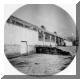 between a center, where feed was stored, and flanking, lean-to sheds where