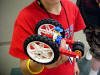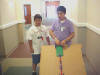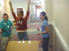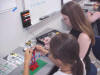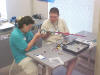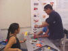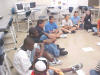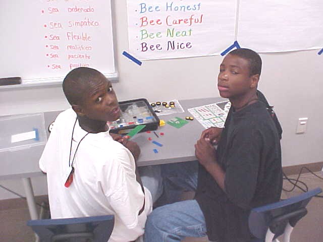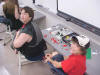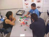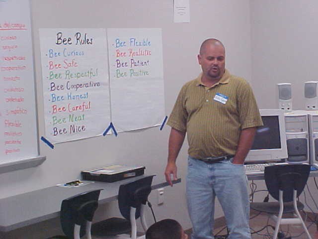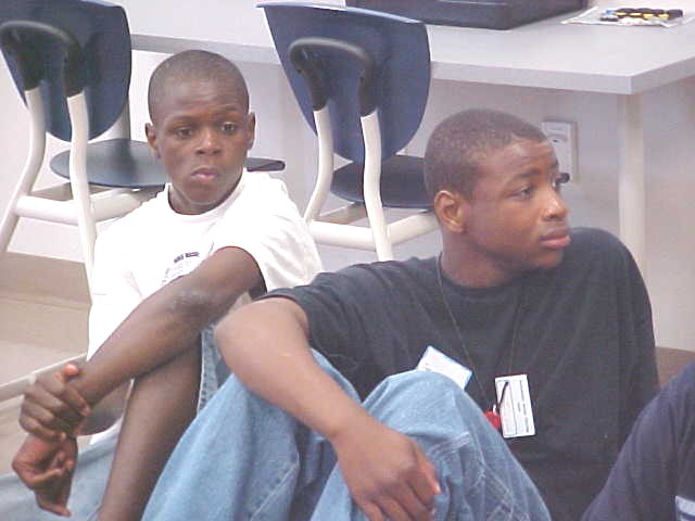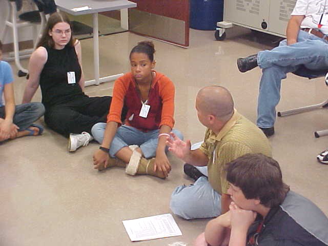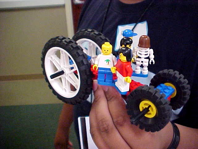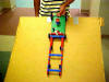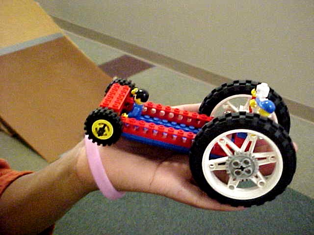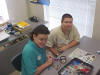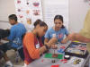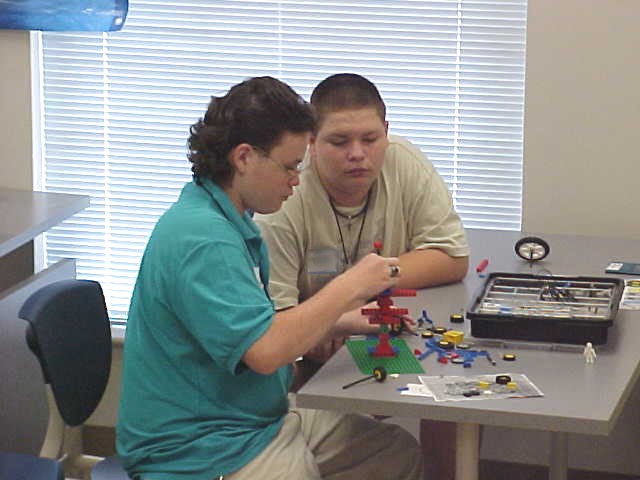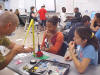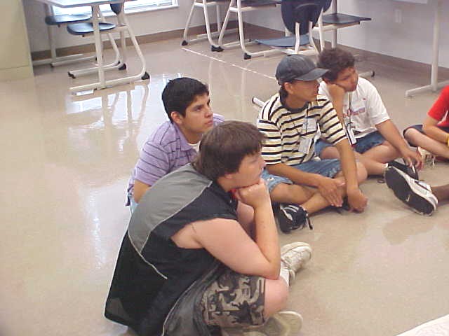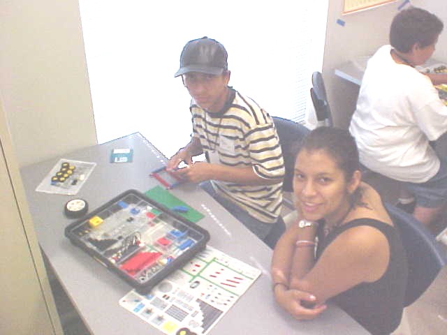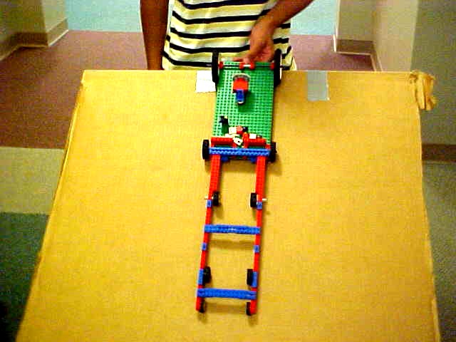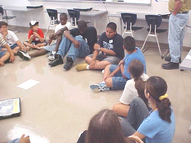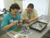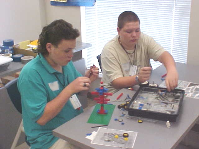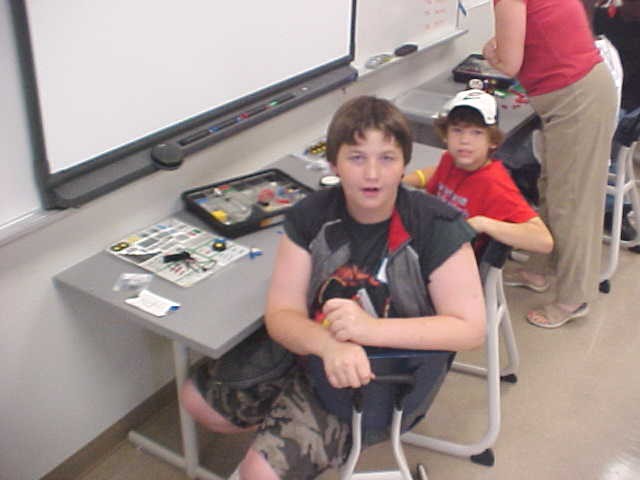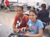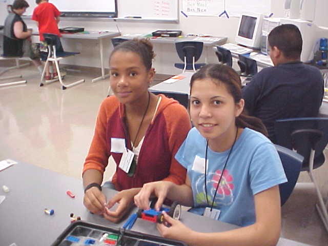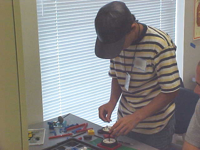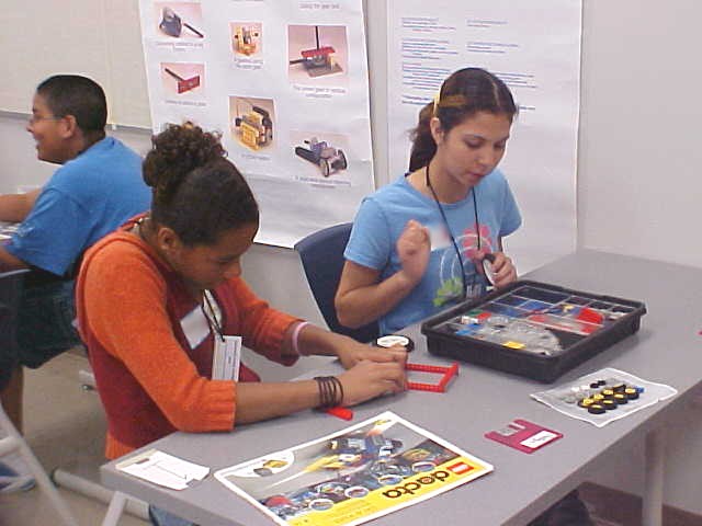 The first day of Robotics Camp 2005 in Murray, Kentucky, was a success. The campers began the day by gathering around the virtual campfire and discussing the plans for the day and for the week. The first activity was "," or "Costear para lo Máximo" which required camper teams to focus on using good building techniques to create vehicles that would coast as far as possible after going down a long ramp. They also worked on reducing friction as much as possible. This early construction activity will be helpful when we build our robotic vehicles later in the camp. A second challenge was introduced, "" or "Construya el Vehículo Más Largo." Campers were asked to design a vehicle that was as long as possible and that would still coast after going down the ramp. The record for the longest vehicle was 54 inches long. Finally, the campers were challenged by the activity, "" or "Una Torre." They had to build the tallest tower possible that would support a golf ball. The tallest one was 24 inches high! Both campers and staff are looking forward to tomorrow! We will be using gears, pulleys, and solar panels to create some very interesting vehicles!